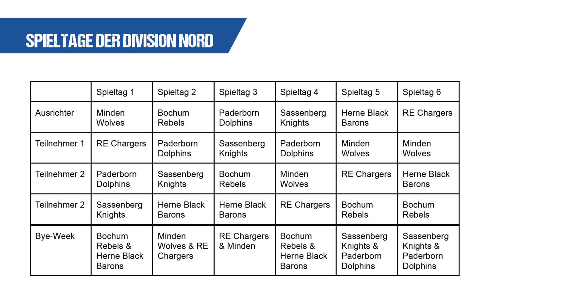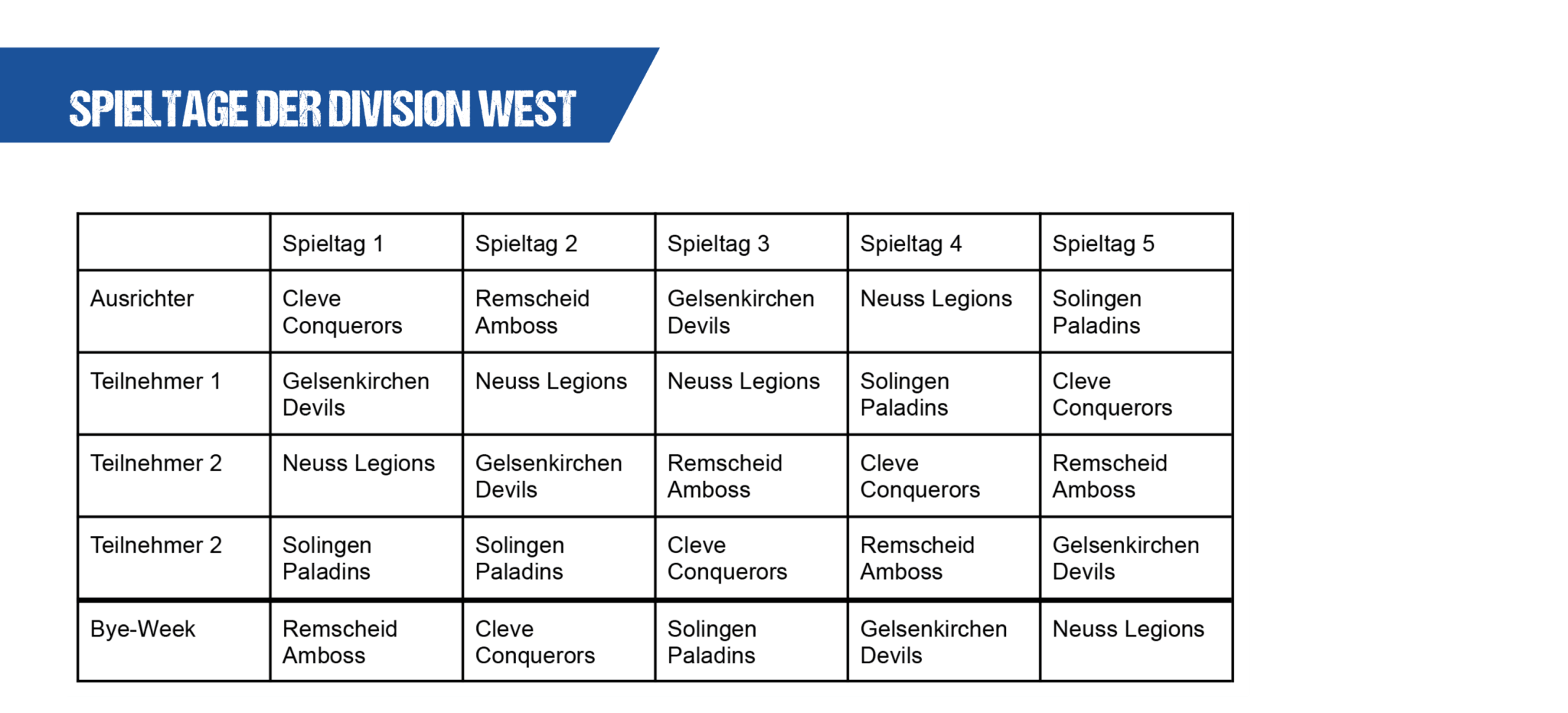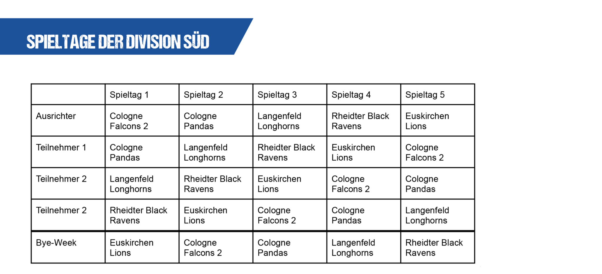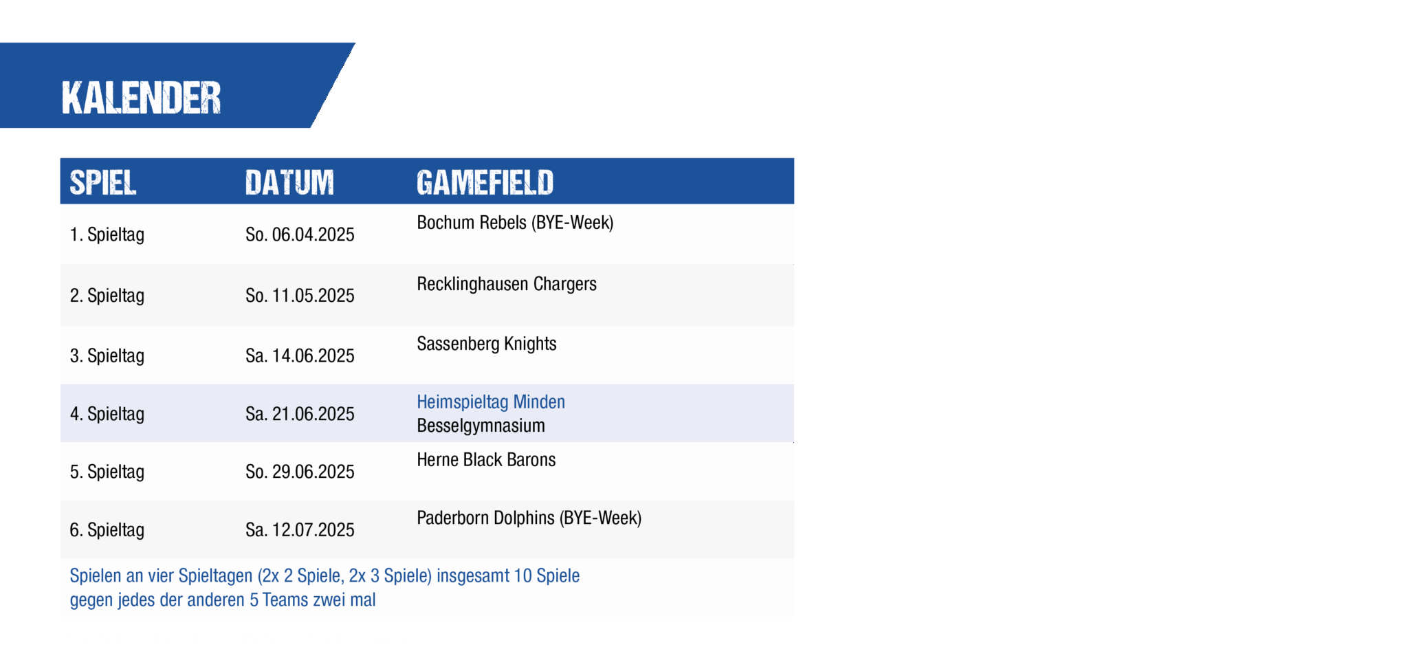 Spieltage als Übersicht