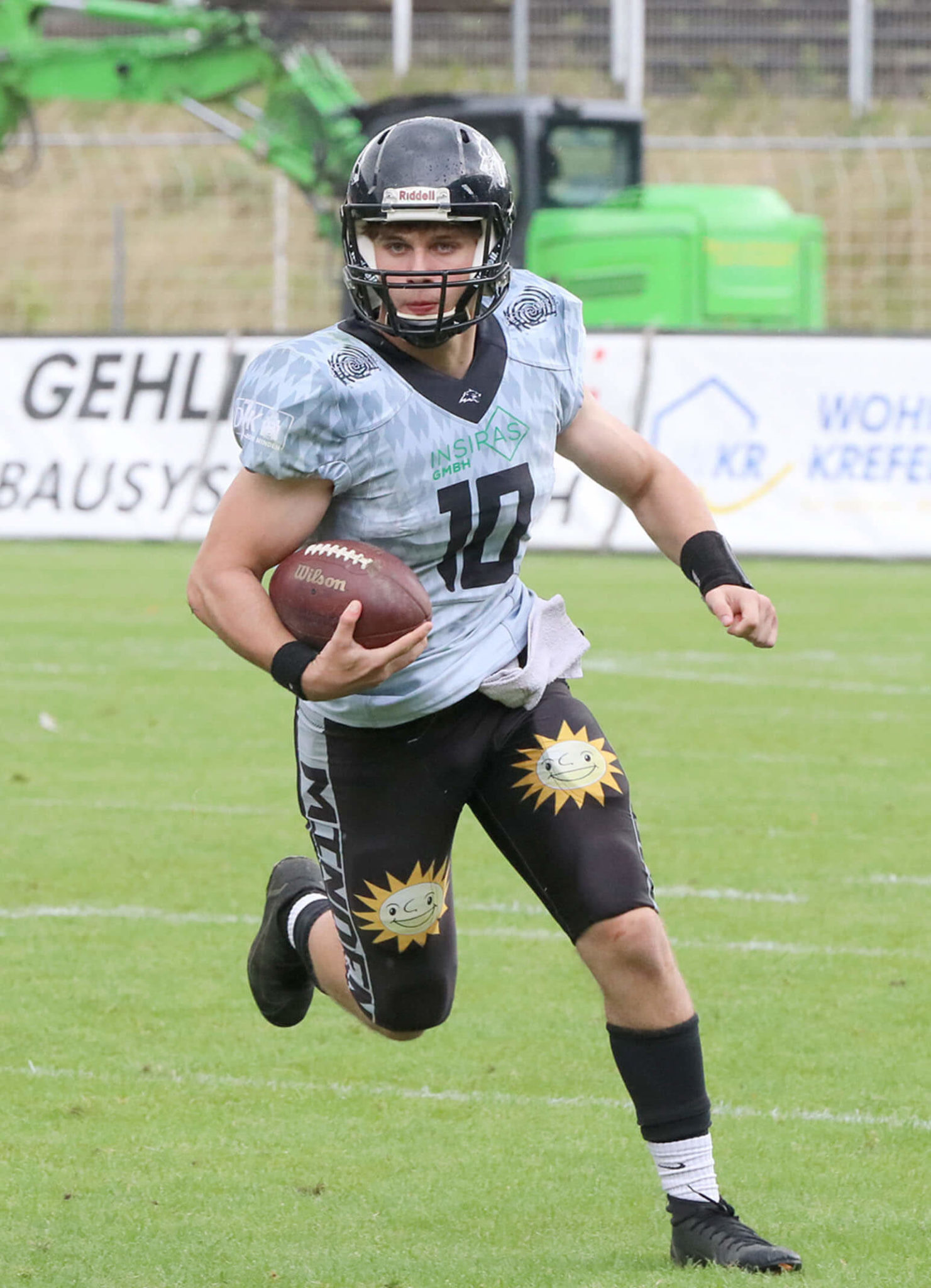 Ein kleines Lächeln hatte er dennoch im Gesicht. Fabrice Steinbach hatte vor zwei Wochen noch in der U19 der Wolves sein letzten Spiel gemacht. Jetzt schenkte ihm Headcoach Phil Gamble in einem so wichtigen Duell das Vertrauen. Und der Rookie rechtfertigte es, spielte als Quarterback mit sehr viel Mut und wusste sich sehr gut in Szene zu setzen. Krusche: „In ihm haben wir ein großes Talent. Fabrice wird uns in der Zukunft noch sehr viel Freude bereiten!“
