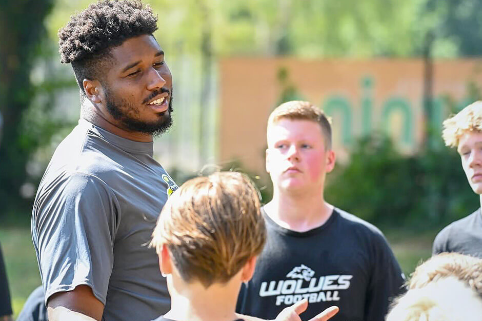„Einmal einen NFL-Spieler als Gast oder für eine Autogrammstunde zu bekommen, wäre ja schon ein Traum gewesen“, so Krusche. „Dann aber einen als Coach eines Jugend-Camps und darüber hinaus als Spieler zu gewinnen, ist mit Worten nicht zu beschreiben. Ein absoluter Glücksfall für uns, der aber auch zeigt, was alles im Projekt ‚Minden Wolves‘ steckt.“