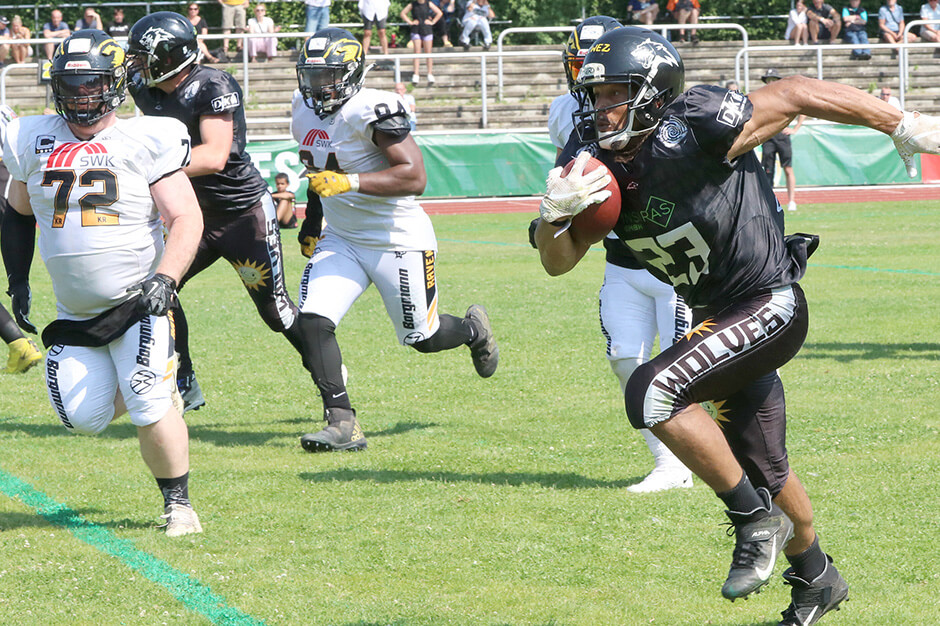 „Wir haben uns gut vorbetreitet. Jetzt gilt es das auch in den vier Vierteln auf den Platz zu bringen“, sagt ein fokussierter Phil Gamble. Der Headcoach des Wolfsrudels weiß um die Höhe der Hürde, die seine Jungs nehmen müssen. „Vorrangig ist erstmal, dass wir die Zahl der Eigenfehler gegenüber dem Hinspiel deutlich minimieren müssen. Gerade die Snaps müssen diesmal einfach besser kommen. Das ist eine Grundvoraussetzung“, benennt er eines der Hauptübel bei der zumindest in der Höhe vermeidbaren 20:48-Heimschlappe. „Aber die Jungs sind heiß auf das Duell. Sie haben sich längst noch nicht aufgegeben!“
