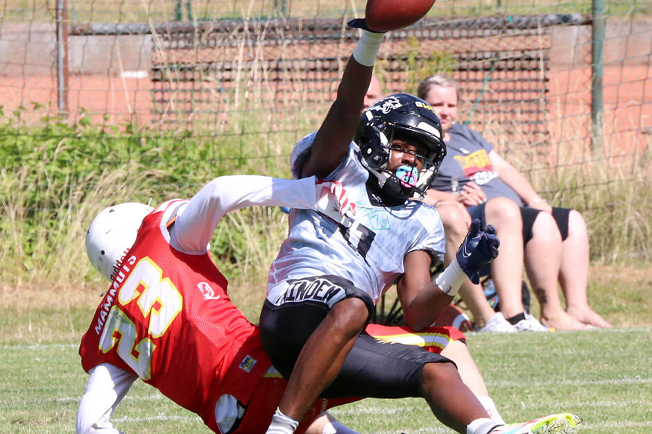 Zurück in der Erfolgsspur. Eine Woche nach der bitteren Heimniederlage gegen Topfavorit Krefeld haben sich die Minden Wolves den Mund abgeputzt, den Kopf nach oben gerichtet und sich wieder auf ihre Stärken besonnen. Dabei dominierten sie von der ersten bis zur letzten Minute und ließen im Nachholspiel bei den Münster Mammuts nichts anbrennen. Überragender Akteur beim klaren 55:0 (7:0, 21:0, 13:0, 14:0) war Willie Fedd jr. Der schnelle Wide Receiver markierte bis zum zwischenzeitlichen 34:0 alle fünf Touchdowns!