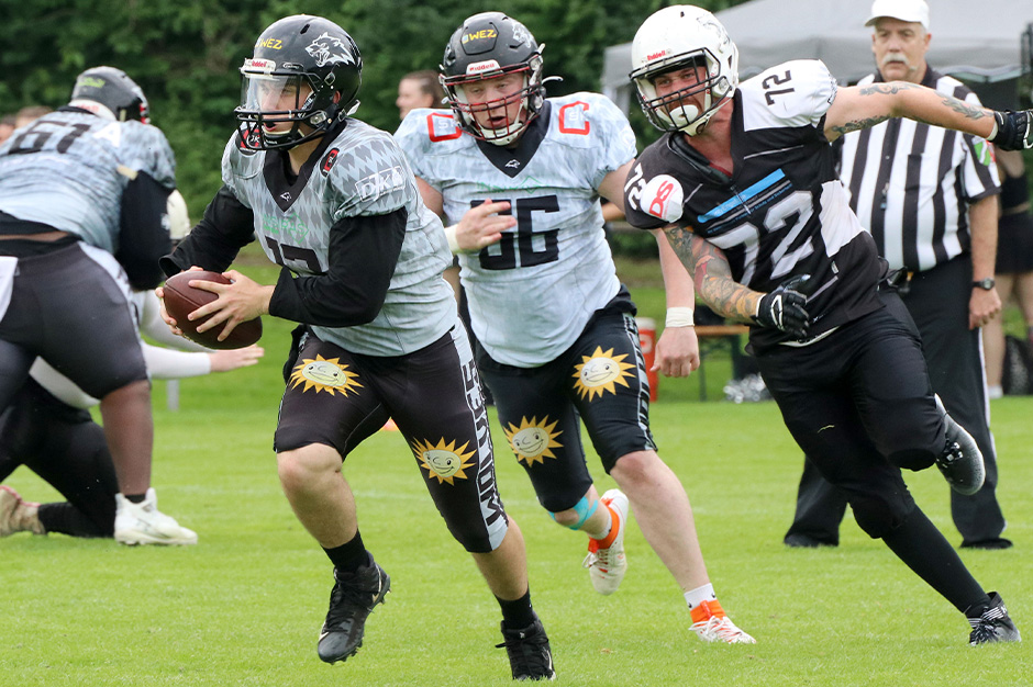 Seit dem letzten Auftritt der Wolves, der mit einem glanzlosen, aber klaren 28:3-Erfolg Ende Mai in Mönchengladbach endete, passierte in der Liga aus Sicht der Gamble-Schützlinge etwas Gravierendes: Vor drei Wochen nämlich unterlag der bislang ernsthafteste Verfolger aus Kachtenhausen überraschend mit 24:31 bei den Dortmund Giants. „Dadurch haben wir vor den letzten sechs Spielen der Saison jetzt ein Polster von vier Minuspunkten“, hebt Sportdirektor Volker Krusche die verbesserte Ausgangslage hervor. „Aber natürlich haben wir nicht vor, uns darauf auszuruhen und dadurch irgendwo Federn und den Vorsprung schmelzen zu lassen.“