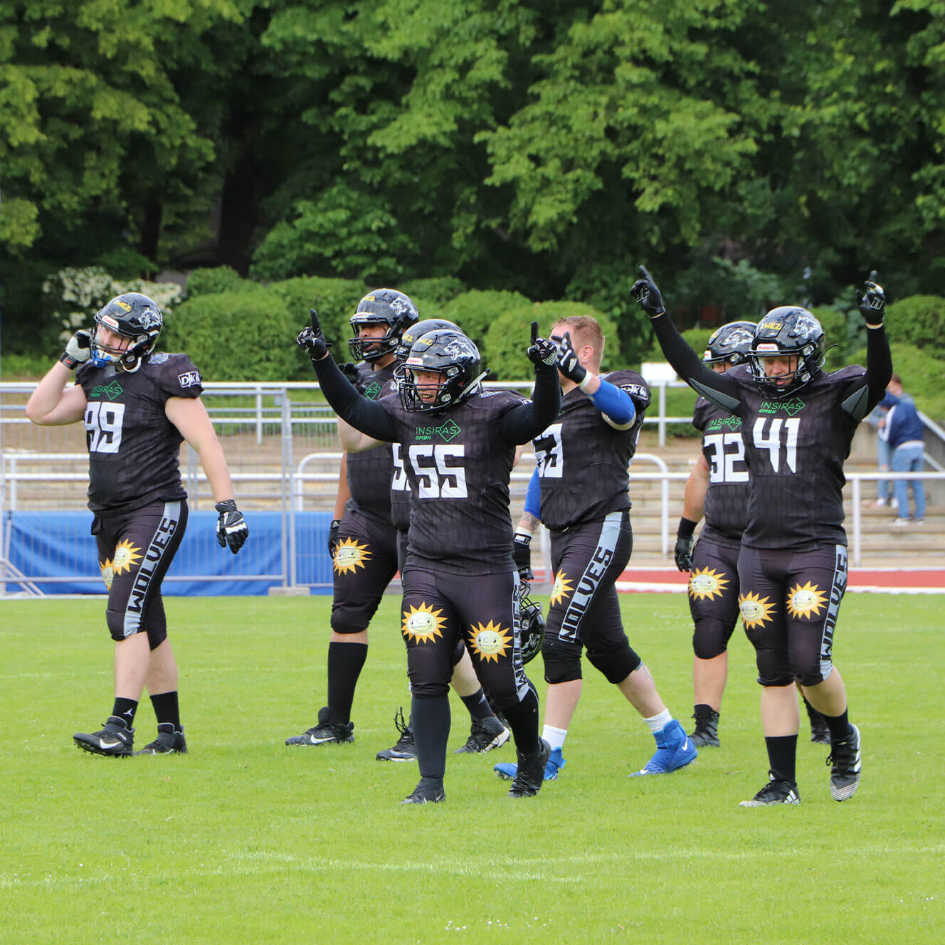 „Es ist wieder ein tolles Spektakel, das wir den Zuschauern geboten haben, gewesen. Ich hoffe, dass es sich einfach lohnt, unsere Gamedays zu erleben“, so ein zufriedener Sportdirektor Volker Krusche. „Im Spitzenspiel am 11. Juni gegen die Recklinghausen Chargers hoffe ich wieder auf eine große Unterstützung von der Rängen. Die brauchen unsere Jungs!“