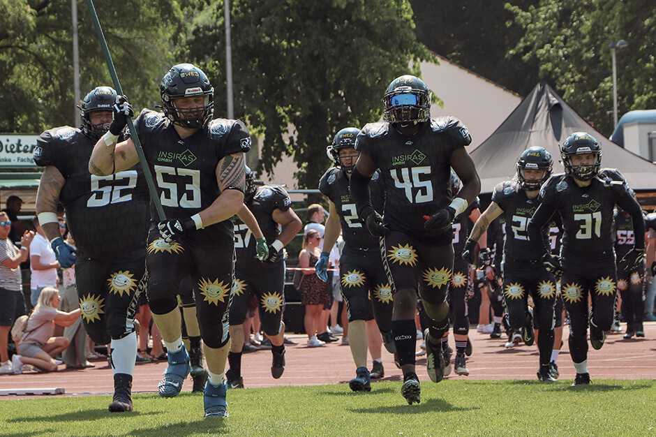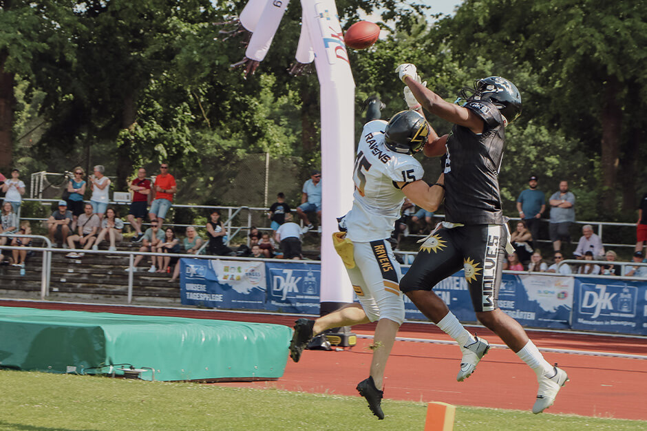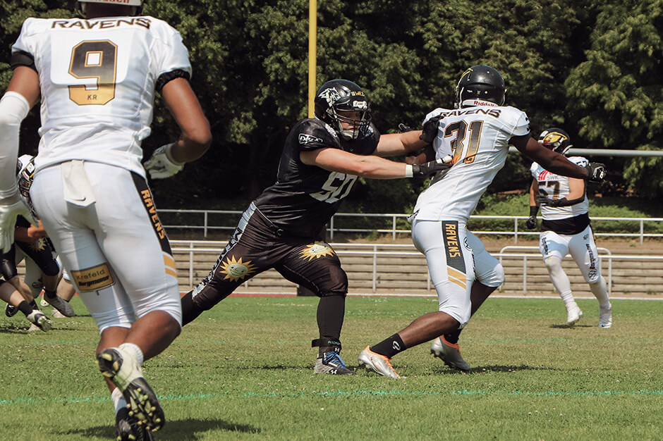 „Davon wollen wir natürlich nichts wissen. Es gibt immerhin noch ein Rückspiel in Krefeld. Vier Touchdowns Unterschied sind aber schon ein Brett“, stirbt für Headcoach Phil Gamble die Hoffnung zuletzt. Zumal sich sein Team am Samstag selbst schlug und gar nicht zeigen konnte, dass man sich als ebenbürtiger Gegner sieht. „Das wollen wir auf jeden Fall im August zeigen.“
